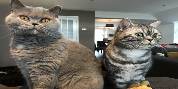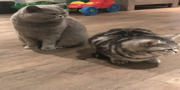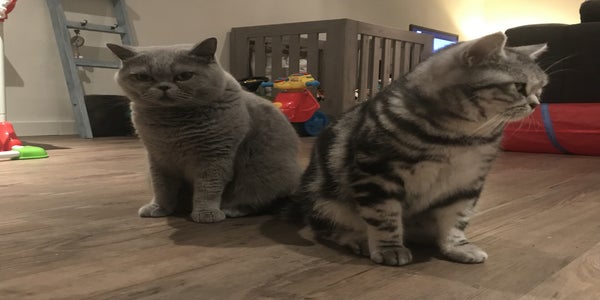 Wij hebben 4 Brits Kortharen bij ons wonen; de zusjes Pip en Puck (blauw en blauw-crème) Kiki en Feline (Black Silver Tabby Blotched).